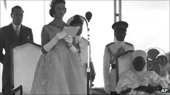 At Nigeria's Independent Ceremony, October 1 1960 - Princess Alexandra reads the British royal message. Sitting next to The Hon. Lady Ogilvy was Nigeria's first and and only Prime Minister, Late Sir Abubakar Tafawa Balewa.